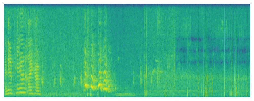 Target Caption | A man speaks with some clinking and clanking while music plays in the foreground. |